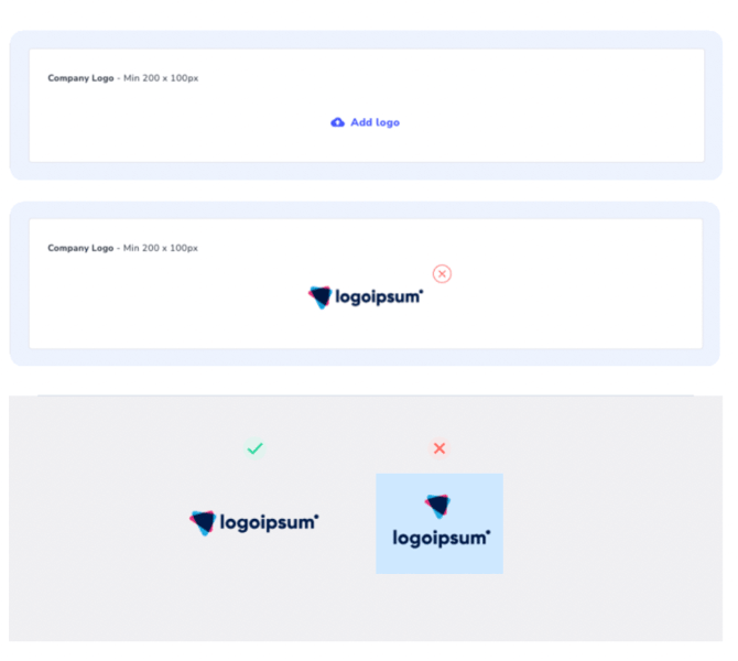 The recommended dimensions for the logo are 200 x 100 px minimum.